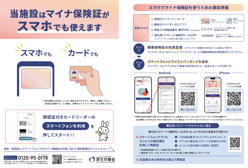 当院では、従来のマイナンバーカードに加え、スマートフォンでのマイナ保険証にも対応しております。
